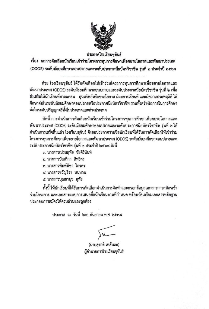ข่าวประชาสัมพันธ์ ประกาศโรงเรียนขุขันธ์ ประกาศโรงเรียนขุขันธ์ เรื่อง ผลการคัดเลือกนักเรียนเข้าร่วมโครงการทุนการศึกษาเพื่อขยายโอกาสและพัฒนาประเทศ (ODOS) ระดับชั้นมัธยมศึกษาตอนปลายและระดับประกาศนียบัตรวิชาชีพ รุ่นที่ ๒ ประจำปี 2568 2 ตุลาคม 20252 ตุลาคม 2025 admin Post Views: 7