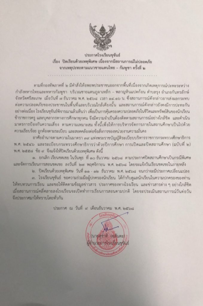 ข่าวประชาสัมพันธ์ ประกาศโรงเรียนขุขันธ์ ประกาศโรงเรียนขุขันธ์ เรื่อง ปิดเรียนด้วยเหตุพิเศษ เนื่องจากมีสถานการณ์ไม่ปลอดภัยจากเหตุปะทะตามแนวชายแดนไทย-กัมพูชา ครั้งที่ 2 9 ธันวาคม 20259 ธันวาคม 2025 admin Post Views: 9